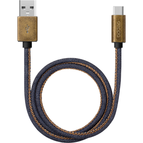 Дата-кабель Jeans USB - Type-C, медь/джинса, 1.2м, синий, крафт, Deppa 72277-OZ