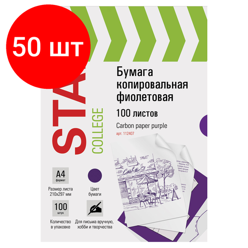 Комплект 50 шт, Бумага копировальная (копирка), фиолетовая, А4, 100 листов, STAFF, 112407