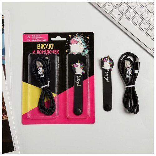 Набор: держатель для провода и Кабель, провод USB Android "Единорог вжух и порядочек", 1 м