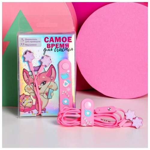 Наушники и держатель для проводов «Время для счастья», микрофон, 1,2 м, набор