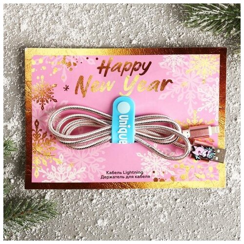 Набор держатель для провода + кабель для Apple (Lightning) «Happy New Year», 1А, 1м