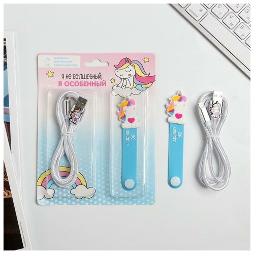 Набор: держатель для провода и кабель USB iPhone «Единорог особенный», 1 м