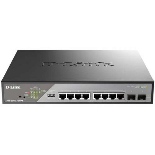 D-Link Настраиваемый L2 PoE-коммутатор, 8х1000Base-T PoE, 2x1000Base-X SFP, PoE-бюджет 130 Вт