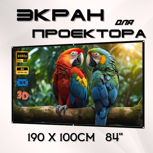 Экран для проектора с кольцами, тканевый, складной 84 ДЮЙМА, полотно для проектора 16:9 (190х100см)