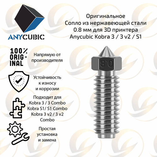 Сопло из нержавеющей стали 0.8 мм для 3D принтера Anycubic Kobra 3 / 3 v2 / S1