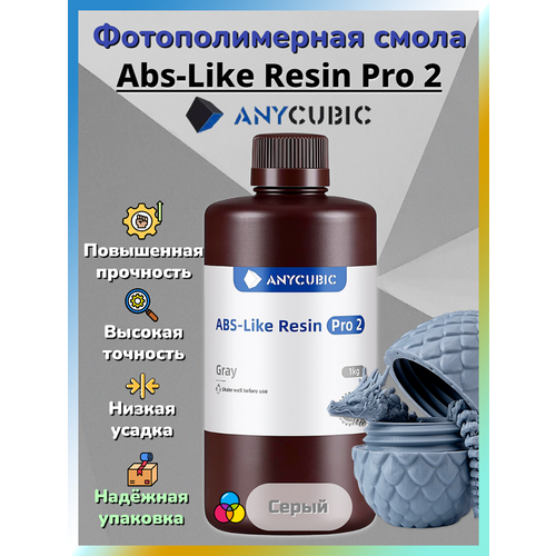 Фотополимерная смола Anycubic ABS-Like Pro 2 с повышенной прочностью для 3D принтеров, серая, 1 кг
