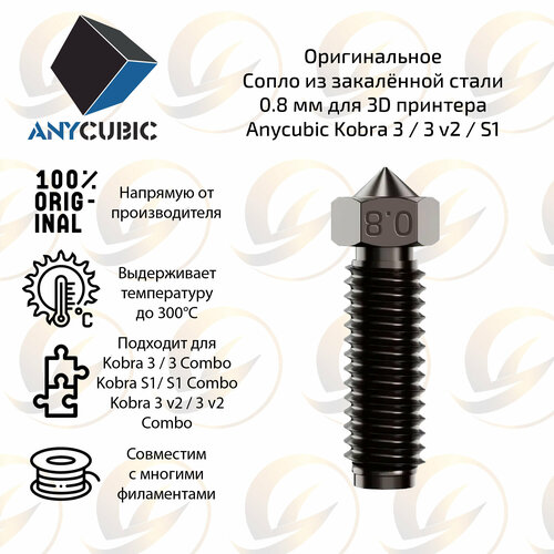 Сопло из нержавеющей стали 0.8 мм для 3D принтера Anycubic Kobra 3 / 3 v2 / S1