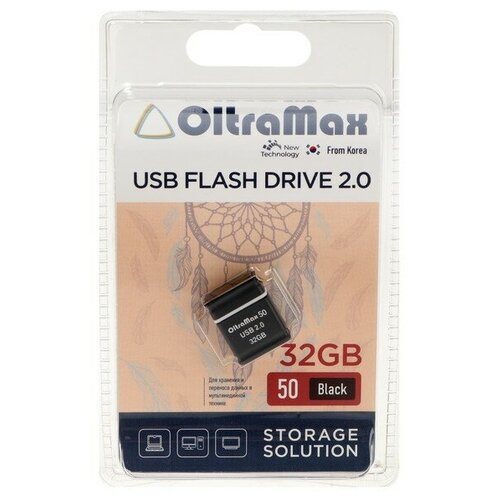 Флешка OltraMax 50, 32 Гб, USB2.0, чт до 15 Мб/с, зап до 8 Мб/с, чёрная