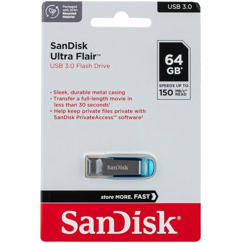 Флеш-накопитель SanDisk USB 3.0 64 ГБ Flash drive Ultra Flair Tropical Blue