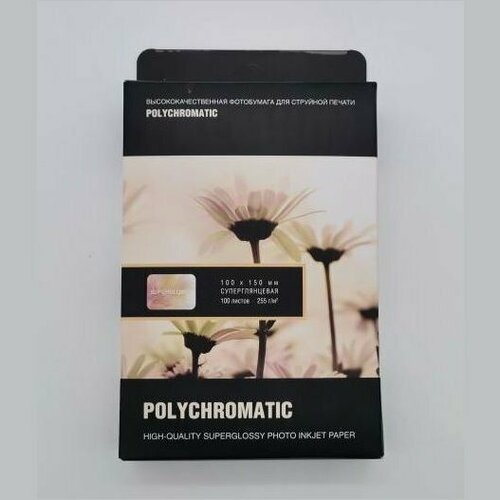 Фотобумага односторонняя суперглянцевая 255гр/м, 10x15, 50л, Polychromatic