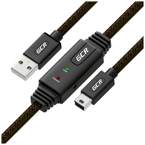 GCR Кабель активный 15.0m USB 2.0, AM/mini 5P, GOLD, черно-прозрачный, с усилителем сигнала, разъём для доп. питания, 28/24 AWG