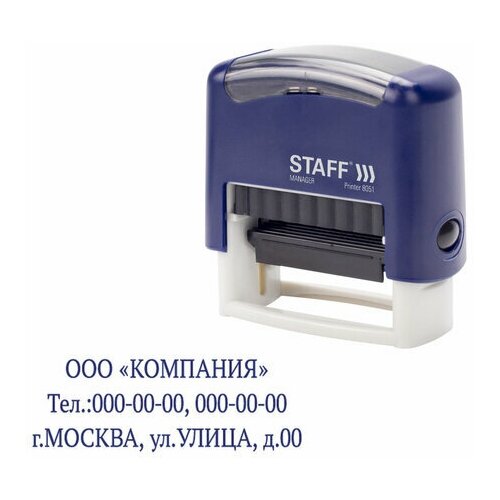 Штамп самонаборный 3-строчный STAFF, комплект 2 шт, оттиск 38х14 мм, "Printer 8051", касса В комплекте, 237423