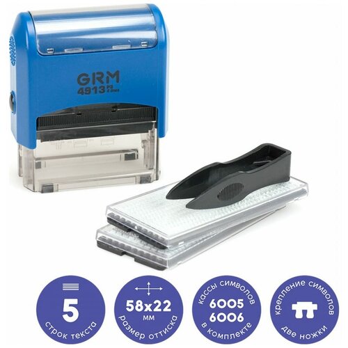 Датер самонаб. 6 строк+дата, оттиск 69х49 мм синий, GRM 5485 HUMMER, касса В комплекте, 112000120
