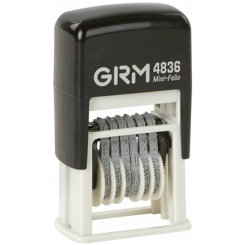 светлый, серыйЛенточный нумератор - GRM 15124 GRM 15124 нумератор ручной, ленточный. Кол-во лент (разрядов) : 4 разряда Высота шрифта : 12 мм