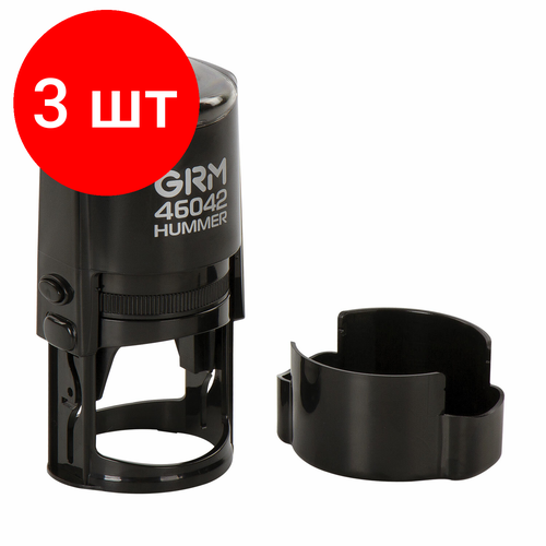 Комплект 3 шт, Оснастка для печатей, оттиск D=42 мм, GRM 46042 Hummer, корпус черный, крышка, подушка, 121500200