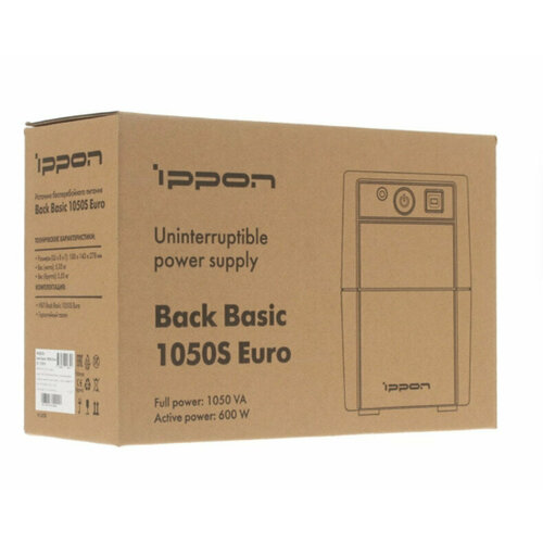 Источник бесперебойного питания Ippon Back Basic 1050S Euro активная мощность 600Вт, полная мощность 1050ВА, (1373878)