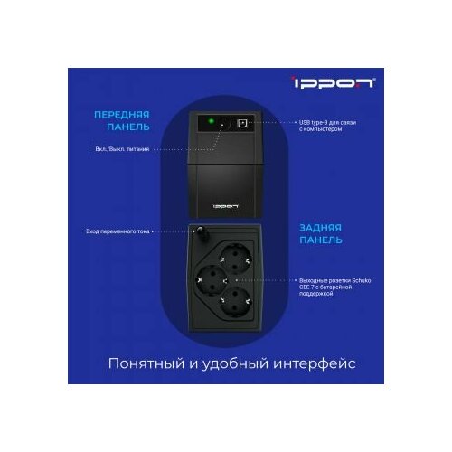 Back Basic - самый доступный по цене массовый ИБП Ippon, предназначен для защиты персональных компьютеров и мониторов, а также друг...