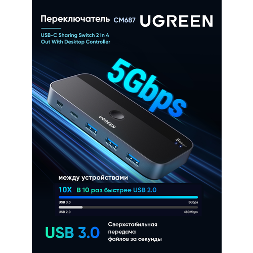 Переключатель UGREEN CM687 (25098) USB-C Sharing Switch 2 In 4 Out With Desktop Controller. Цвет: серый