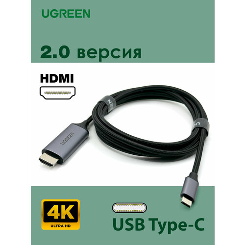 Кабель переходник UGREEN PremPack USB Type-C (Thunderbolt 4) - HDMI 2.0 (1.5 метра) 4K 60 Hz