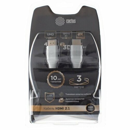 Кабель CACTUS аудио-видео CS-HDMI.2.1-3 HDMI (m)/HDMI (m) 3м. Позолоченные контакты