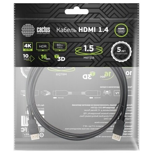 Кабель CACTUS аудио-видео CS-HDMI.1.4-1.5 HDMI (m)/HDMI (m) 1.5м. Позолоченные контакты