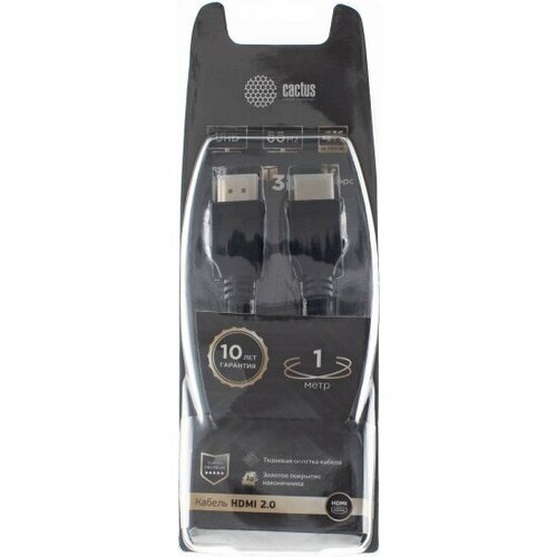 Кабель аудио-видео Cactus CS-HDMI.2-1 HDMI (m)/HDMI (m) 1м. Позолоченные контакты