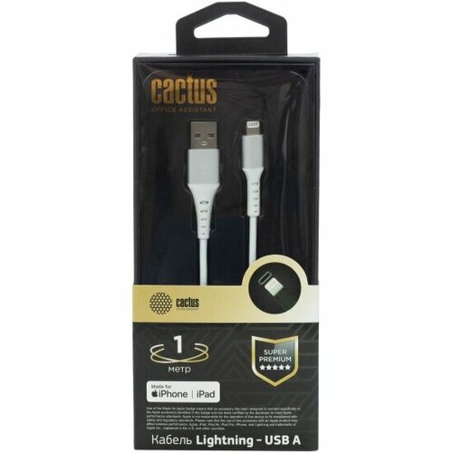 Кабель Cactus CS-LG. USB. A-1, Lightning (m) - USB (m), 1м, MFI