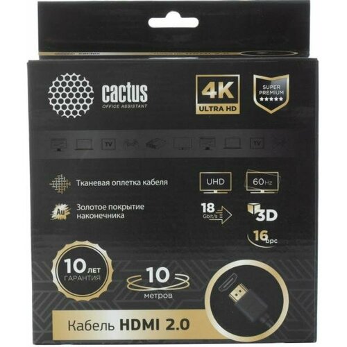 Кабель Cactus аудио-видео HDMI (m)/HDMI (m) 10м. Позолоченные контакты черный