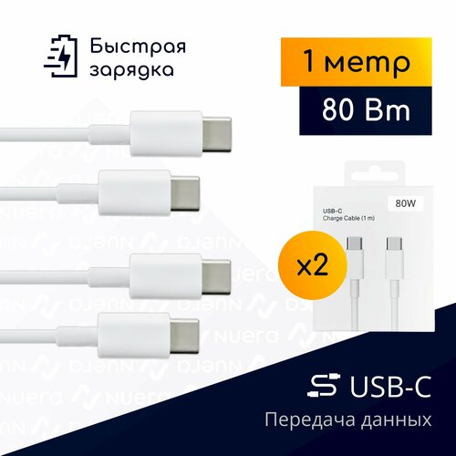 Комплект кабелей USB-C для быстрой зарядки, 80 Вт, 1м, белые / совместимы с новыми MacBook, iPad, iPhone 15 / Original Drop