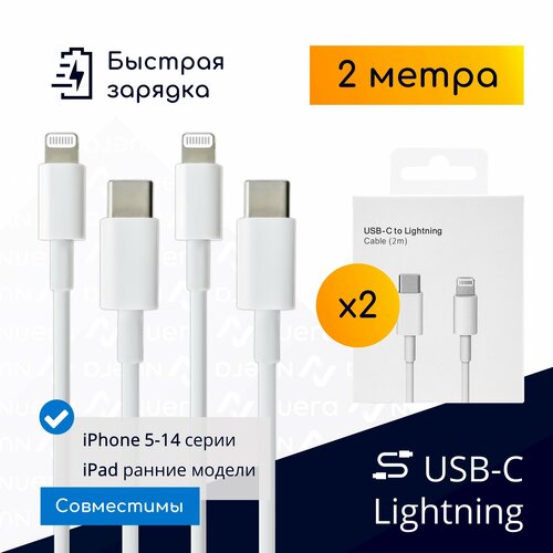 Комплект кабелей Type-C – Lightning для быстрой зарядки iPhone 8-14 и iPad, 2м, белые / 2 шт. / Original drop