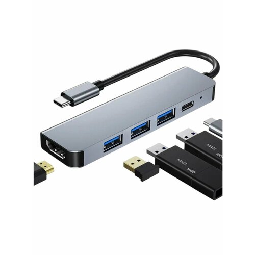 Переходник для MacBook и Iphone 15 Type-C на HDMI разветвитель usb + HDMI 6 в 1