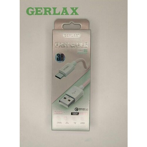 Кабель GERLAX USB Type-C для зарядки телефона, быстрая зарядка провод type c шнур 1 метр белый