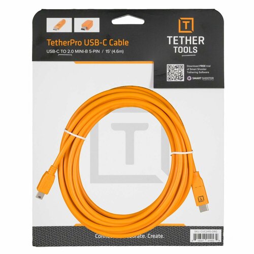 Кабель Tether Tools TetherPro USB-C to 2.0 Mini-B 5-Pin 4.6m Orange (CUC2415-ORG)