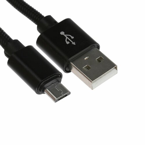 Кабель MicroUSB - USB, 2.1 А, оплётка нейлон, 1 метр, чёрный