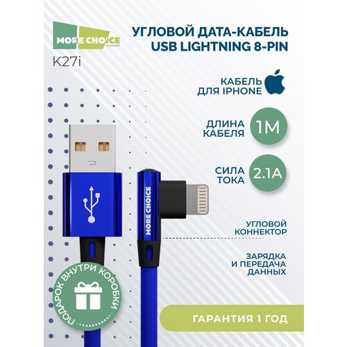 Дата-кабель USB 2.1A для Lightning 8-pin More choice K27i нейлон 1м Blue