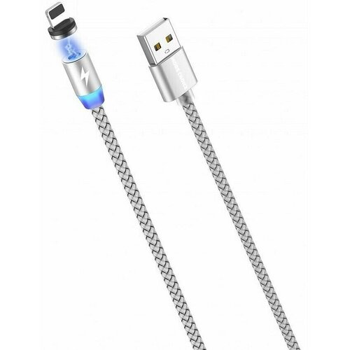 Дата-кабель Smart USB 2.4A для Lightning 8-pin Magnetic More choice K61Si нейлон 1м Silver