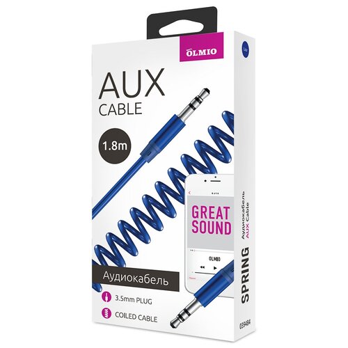 AUX-кабель 3.5mm-3.5mm, 1.8м, витой, Olmio