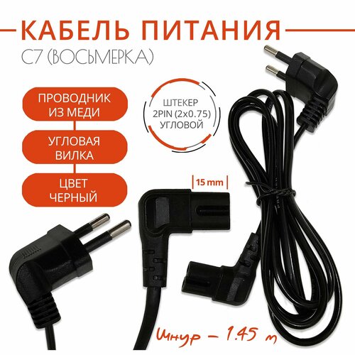 Кабель питания C7 (восьмерка) с угловым разъемом является идеальным решением для подключения различных устройств, таких как видеоре...