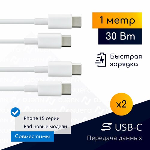 Комплект: 2 кабеля USB-C для быстрой зарядки новых iPhone 15 и iPad, 30 Вт, 1м, белые / OEM / Original Drop