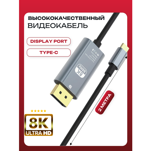Кабель DisplayPort Type-C Ultra HD 8К 60 Гц, 4К 240 Гц, 2 метра