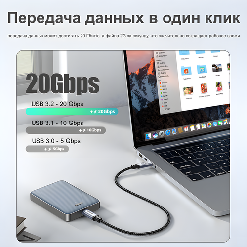 Кабель USB 3.2 Type-C Type-c видео 4K 60Hz, быстрая зарядка PD 240W, 2 метра