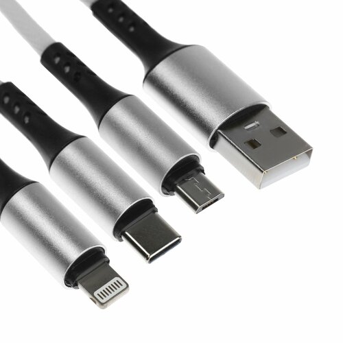 Кабель брелок 3 в 1, MicroUSB/Type-C/Lightning - USB, 2.4 А