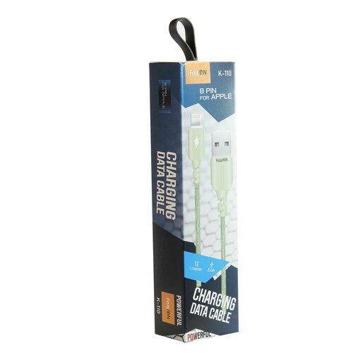 Кабель USB - 8PIN(Lighting) FaisON K-110 Powerful, 1.0м, 3,0А, QC3.0, цвет: зелёный