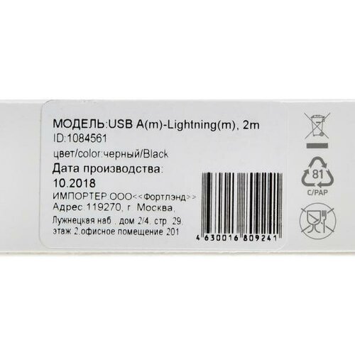 Кабель Digma LIGHT-2M-BLK USB m-Lightning m 2м