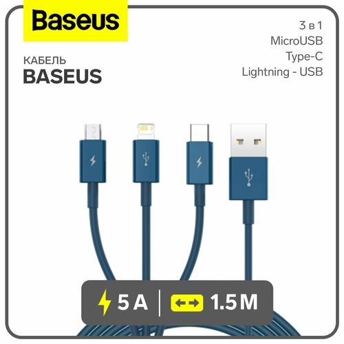 Кабель 3 в 1, 5 А, MicroUSB/Type-C/Lightning - USB, 1.5 м