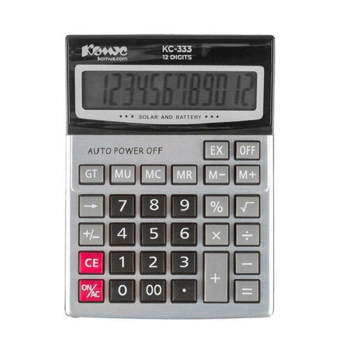 Калькулятор настольный компак kомус КС-333, 12раз, дв. пит,170х125мм, серебр