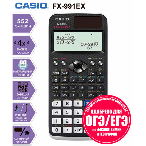Калькулятор непрограммируемый CASIO FX-991EX, 552 функции, сертифицирован для ЕГЭ