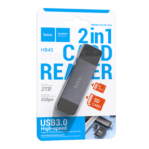 Картридер Hoco HB45, Cardreader 2in1 USB3.0 на SD-micro SD карта памяти два в одном, metal gray
