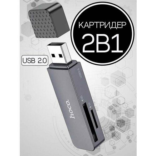 Картридер для микро карт 2 в одном, USB Переходник для micro SD и TF card, hoco HB20, черный