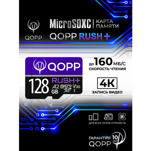 Карта памяти 128 Гб QOPP "RUSH+" А2 U3 V30 micro SD XC высокоскоростная
